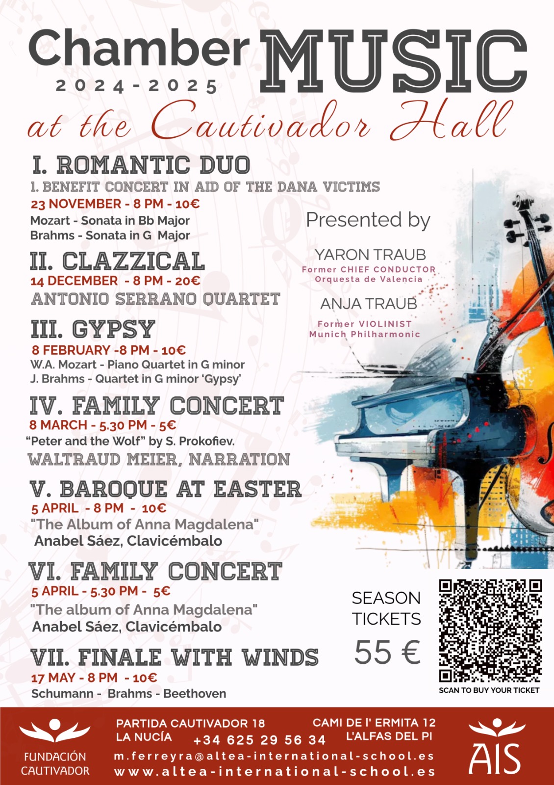 La programación de este año incluye conciertos de música de cámara, conciertos para jóvenes, espectáculos familiares y una innovadora fusión de música clásica y jazz, tendiendo puentes entre obras maestras atemporales y audaces composiciones contemporáneas. La Fundación Cautivador celebra el canon clásico junto con estrenos de compositores actuales, creando un tapiz musical dinámico que resuena a través de generaciones.